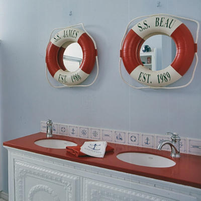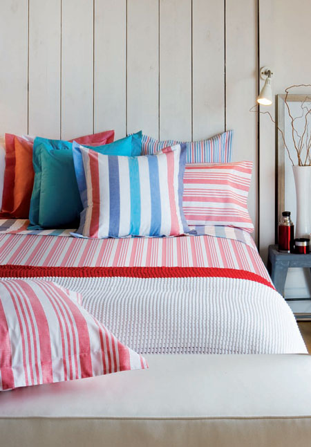 - Ropa de hogar: Las rallas de azul marino son el diseño textil nautico por excelencia. No obstante ciertos estampados (marinos o no) con tonalidades blancas y azules, incluso las rallas rojas hacen alusión a este estilo. Tambien los colores lisos azules o agua marinas, incluso colores más vivos en el estilo de costa.