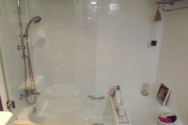 Del aspecto oscuro inicial está pasando a ser un baño con luz,romántico y con cierto aire campestre...