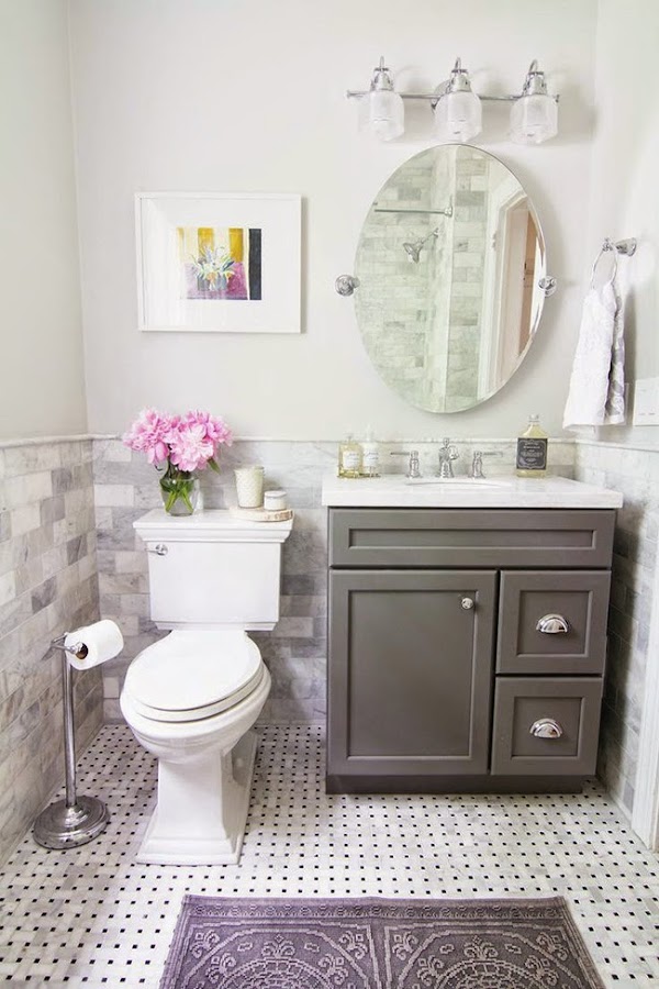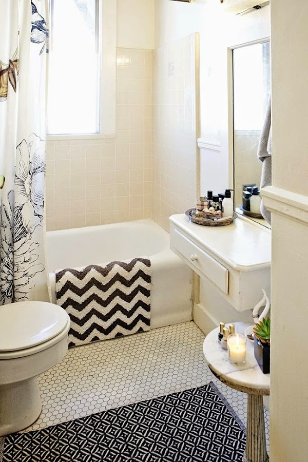 Inspírate en blanco y negro, si el baño además es antiguo, le puedes sacar muchísimo partido porque los suelos de antes no son lo de ahora y por lo tanto tienen un encanto especial.