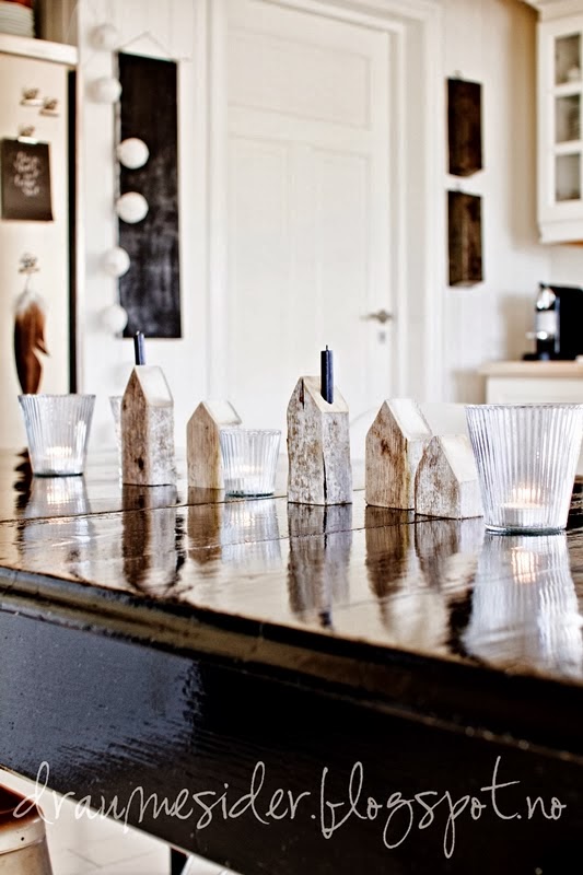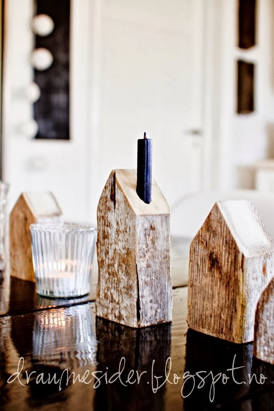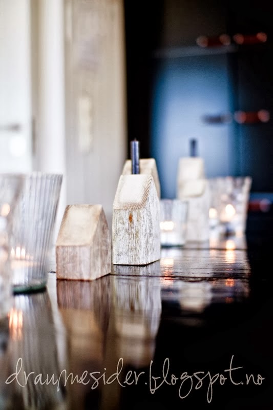 Buscando en la red di con una propuesta nórdica que me encantó, portavelas de madera que crean una "pequeña calle" a lo largo de la mesa, una idea original, donde podemos ver otras opciones de como decorar con una tendencia que cada día está mas de moda.