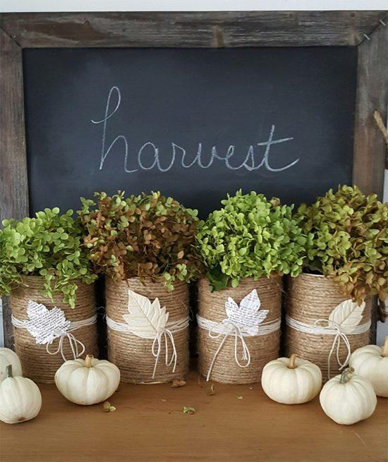 Otra manera de decorar son los centros de mesa a partir de hojas secas, ramas, piñas…