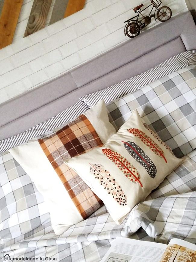 Los colores otoñales son colores tierra, grisáceos y ocre. Un simple cojín, manta o alfombra de estas tonalidades puede ser la clave perfecta.