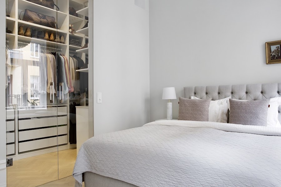 4. En el dormitorio destaca su unión con un gran vestidor repleto de armarios y cajones, y separado con puerta y mampara de vidrio. Luz extra para esta zona de la habitación, que además permite ver toda la ropa sin necesidad de entrar en el vestidor!