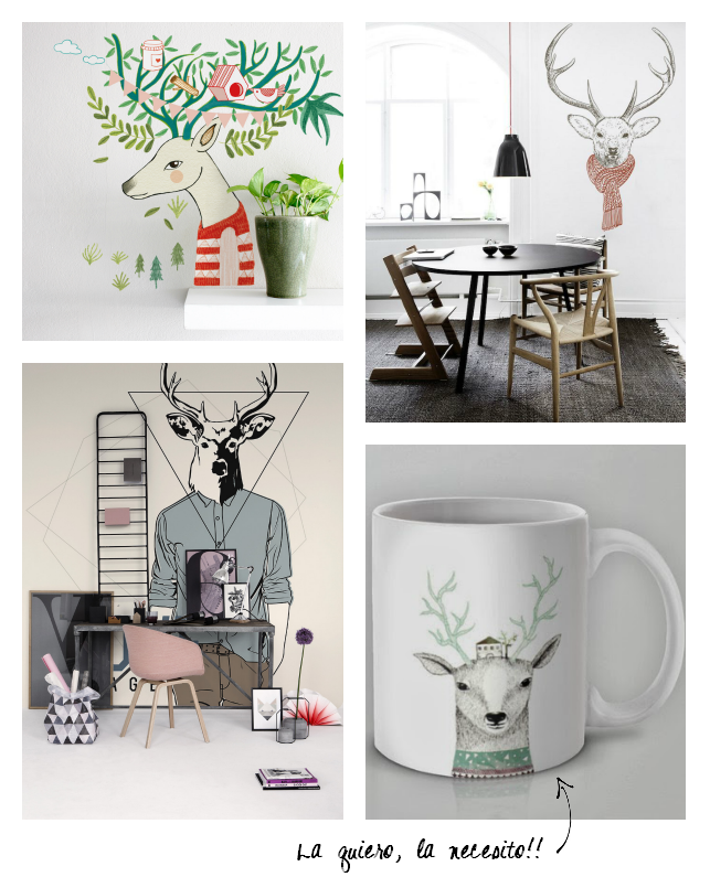 Pero claro, una cosa es tener un animal real en casa como trofeo y otra muy diferente es tener una réplica con todo tipo de materiales o un dibujo por amor a la naturaleza, admirando sus formas y su bonitismo 100%, y en esto, la decoración de estilo nórdico me ha traído varios enamoramientos.