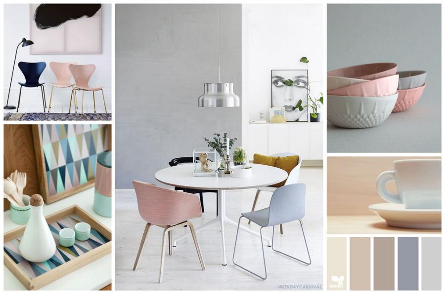 Para que podáis verlo más claro he creado unos moodboards o tableros de inspiración para cada uno de los ambientes de una casa, para ello he utilizado las paletas de colores de Desing-seeds, una fantástica web a la que recurro siempre que necesito inspiración o buscar tonos que puedan combinar entre sí.