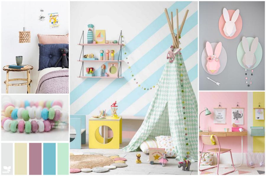 Normalmente asociamos este tipo de colores por su suavidad y delicadeza a una decoración puramente femenina por lo que hay que usarlos con moderación y tener especial cuidado en cómo los mezclamos entre sí para no caer en una combinación demasiado “empalagosa”. Para no conseguir ese efecto y restarles dulzura lo ideal sería mezclarlos con colores neutros como el blanco, o tonos oscuros, gris, azul oscuro o incluso con negro.