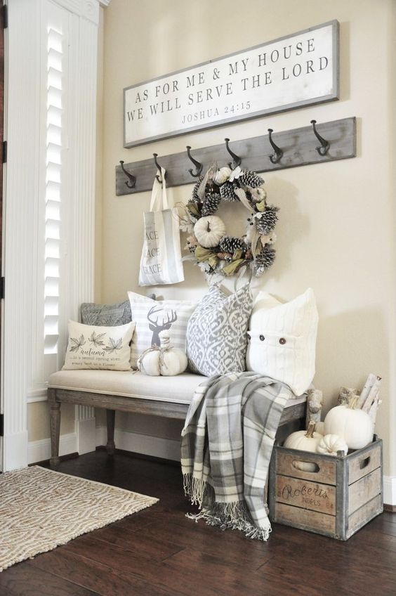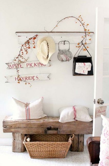 Como veis en las imágenes (pinchando en cada imagen os enlaza a la web del autor) me gusta la idea de poner un banco y un perchero, me parece muy práctico y bonito, además de fácil de llevar a cabo con los medios de los que dispongo.