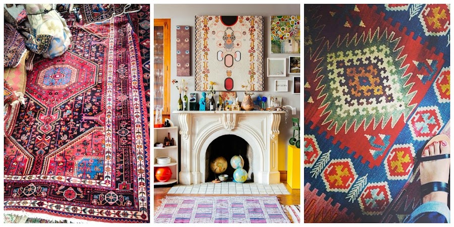 - Alfombras. Tanto en el suelo como en las paredes, tampoco pueden faltar en ningún espacio de estilo boho. Se admiten casi de cualquier tipo aunque, sin duda, las estrellas indiscutibles son las alfombras persas de lana y las jarapas de algodón.