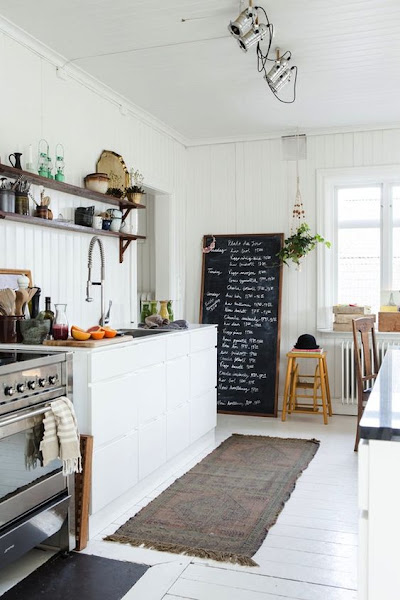 Como podéis ver mis básicos son fregaderos grandes, armarios blancos, pomos negros, elementos en madera y pared de azulejos blancos.