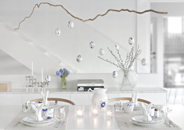 Las casas y jardines se decoran con huevos y conejitos o liebres. Incluso las mesas se llenan de motivos que nos recuerdan que estamos en Pascua. Sobre todo en la mesa de desayuno en días de Pascua.