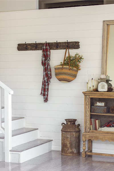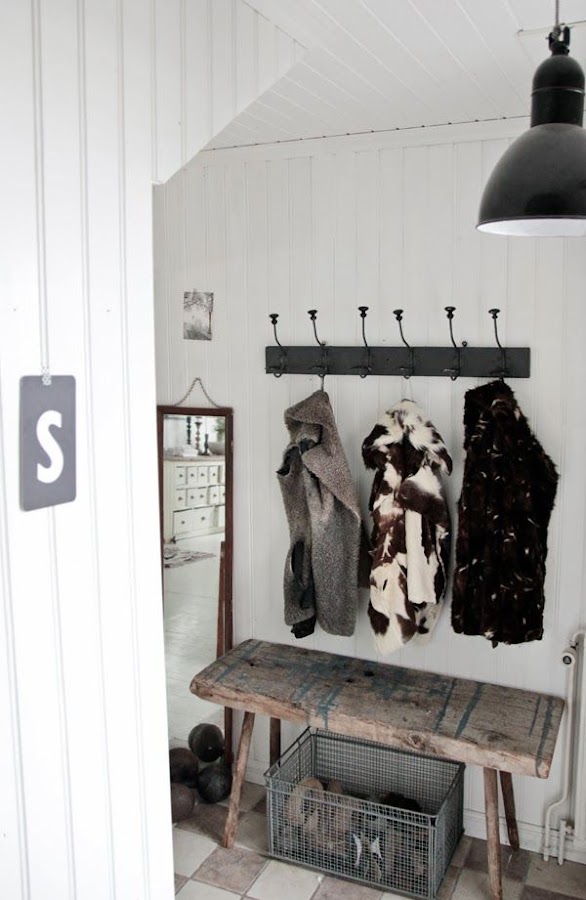 Justo la pared a la que se abre la puerta de entrada había pensado en colgar algunos cuadros, pero dando vuelta a la cabeza, ya que tengo muchos cuadros se me ha ocurrido hacer un perchero rústico.