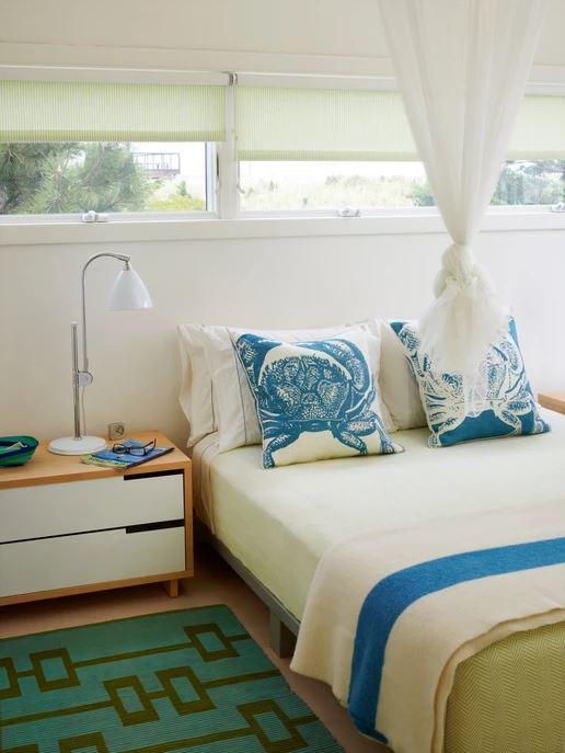 Pues en esta pequeña isla, una maravillosa interiorista que se llama Alexandra Angle (y de la que vimos algún trabajo hace unos cuantos años en esta casa de San Francisco) ha conseguido revitalizar dos cabañas que a primera vista estaban inservibles y poco habitables. Una de ellas es esta maravilla, un espacio lleno de alegría y luminosidad que transmite confort por todos sus costados pero en la que se ha prescindido de todo artificio y sobreactuación. Sencillez y color son las características predominantes.