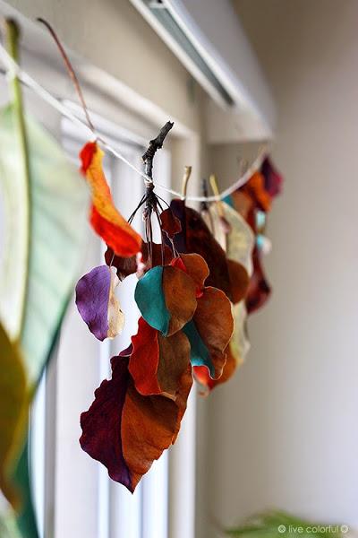 ¿Os gusta la decoración otoñal? ¡Aprovecha las hojas caídas de los árboles y deja volar tu imaginación! Aquí te dejo con un DIY sencillo y precioso para una guirnalda de hojas pintadas de la mano de livecolorful, podéis verlo entero aquí.