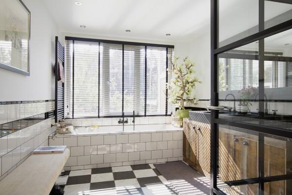 Los sanitarios, en porcelana blanca, y con cierta estética vintage, son perfectos para dar un toque industrial al cuarto de baño. El binomio cromático black & white es el que predomina en el esquema, pero ciertos toques de color, en pequeñas dosis, añaden un extra de estilo.