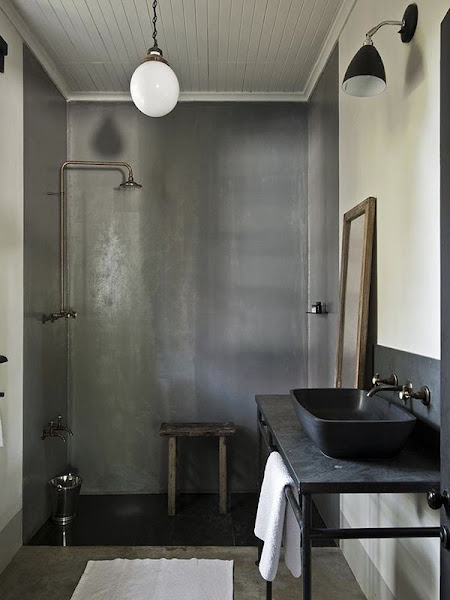 Paredes limpias y exentas de accesorios con texturas desiguales, paredes de hormigón o ladrillo visto. Los suelos también pueden ser de hormigón, un material asequible y duradero, o de cerámica.