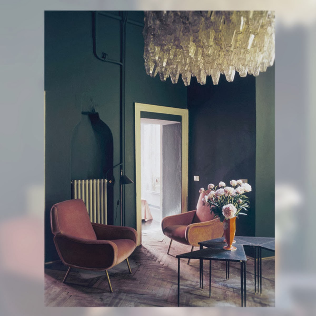 Today we are inspired by this interior with antique wood floor, intense colors, velvety textures and vintage furniture. Happy Inspiration Day!