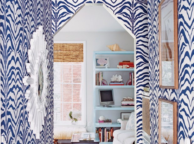 Decir bye bye a las puertas sustituyéndolas por arcos tan originales como éste y vestir las anodinas zonas de paso con prints extravagantes, que nunca decepcionan.