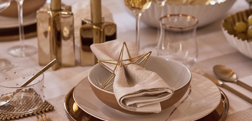 Quizá poner una decoración completamente en color dorado es arriegado y podría no resultar muy elegante, por eso lo mejor es añadir blanco de base para crear el contraste sofisticado y justo. Descubre todos sus complementos como velas con motivos navideños, servilleteros en forma de estrellas y juegos de café y teteras en forma de calabaza, copas con su toque dorado, igual que la vajilla…