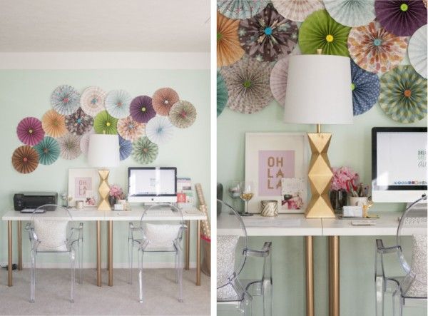 La pared decorada con flores de papel en diferentes colores, le aporta mucha
