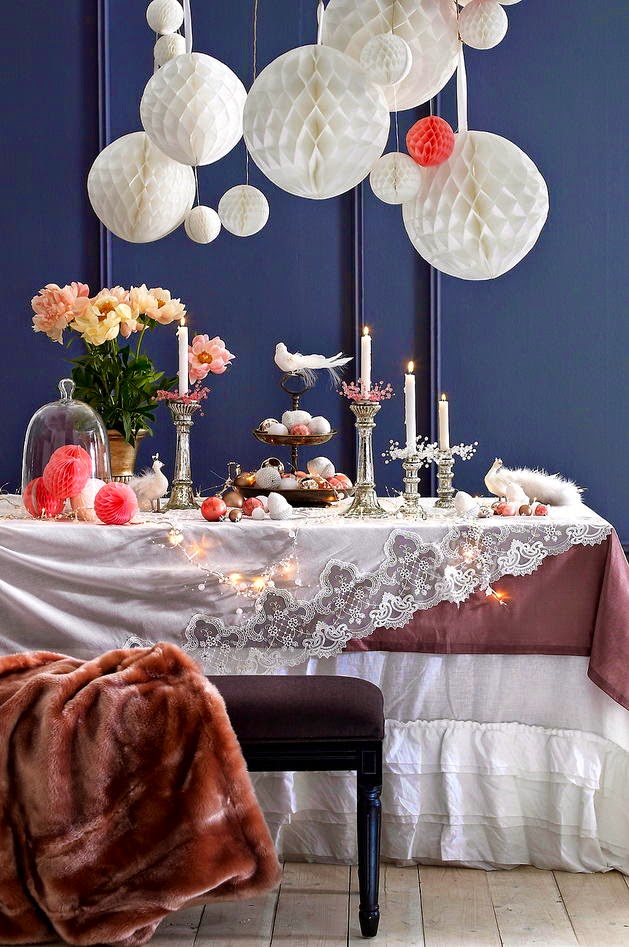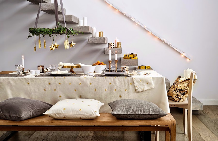 Cuando llegan estas fechas, no sólo las calles y las tiendas se transforman, nuestros hogares también se redecoran y preparan para el momento más esperado del año. Decorar la casa con motivos navideños es una tarea que gusta a pequeños y mayores, el árbol de Navidad, el belén, los arreglos florales, las luces que iluminan las ventanas y puertas..., elementos básicos que nunca faltarán. Pensando ya en mi mesa ( pues este año me toca recibir en casa ¡que emoción! ) he ido recopilando ideas sencillas, que sean resultonas y llenas de estilo para una mesa de Navidad que triunfe ;). Con colores tradicionales como rojo y verde, entremezclados con otros más innovadores como el azul, negro, plata y dorado, conseguiremos un ambiente que invita a la vida familiar e incentiva la magia de las fiestas navideñas.
