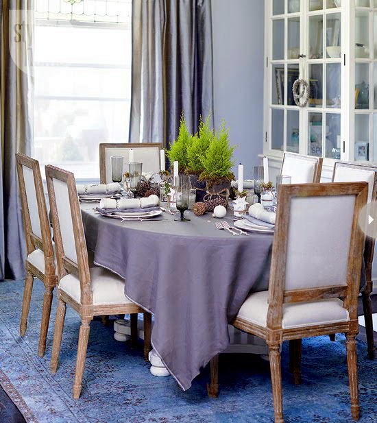* Debes tener en cuenta que los centros de mesa ocupan un rol central y casi determinante, por lo tanto debes pensar en cómo adecuar la mantelería, adornos y vajilla de acuerdo al él, o procurar que este adorno sea la coronación del resto de los elementos antes dispuestos. * Pon notas de color, complementariedad o contraste, tanto con la mantelería como con la vajilla. Pueden ser pequeños adornos y accesorios que se desprendan del centro de mesa: por ejemplo, si en tu centro de mesa utilizas velas, frutos secos, piñas o conos, puedes usar estos adornos en miniatura junto a cada plato.