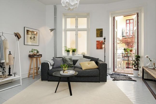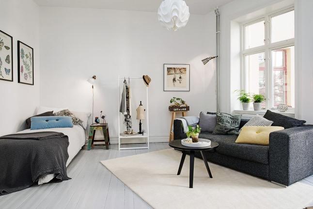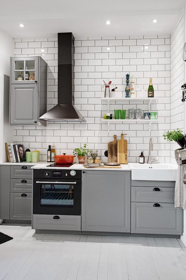 This week on the blog, the protagonist is a beautiful tiny little apartment of 30 m2. What do you think about it? White from floor to ceiling makes the space feel much larger than it really is. And despite being decorated in dark colors it is no overload. And it has an industrial point that I love. The fireplace and the kitchen with subway tiles are amazing. Unfortunately it is not cold enough to have a fireplace at home in my city, but this is ideal!