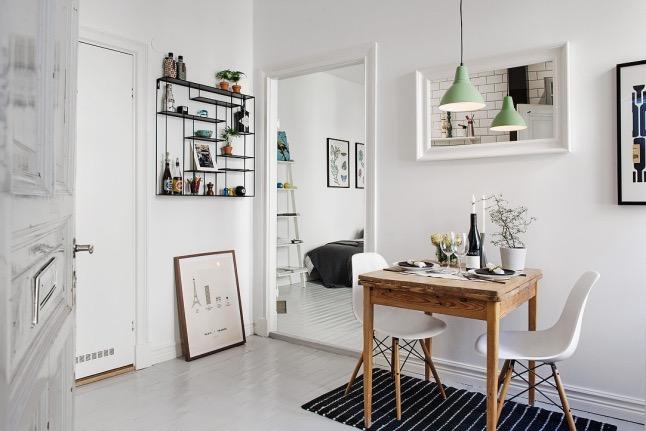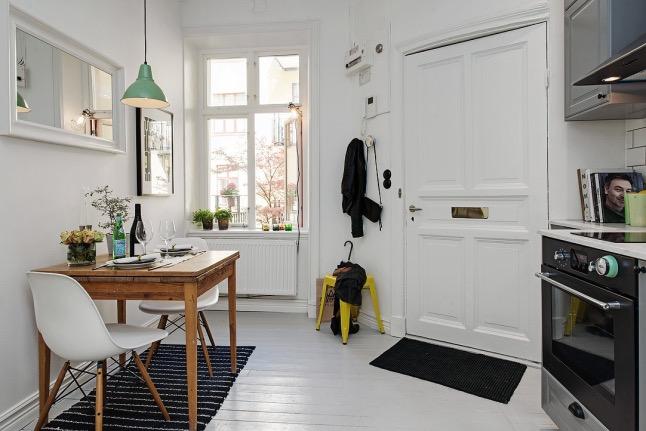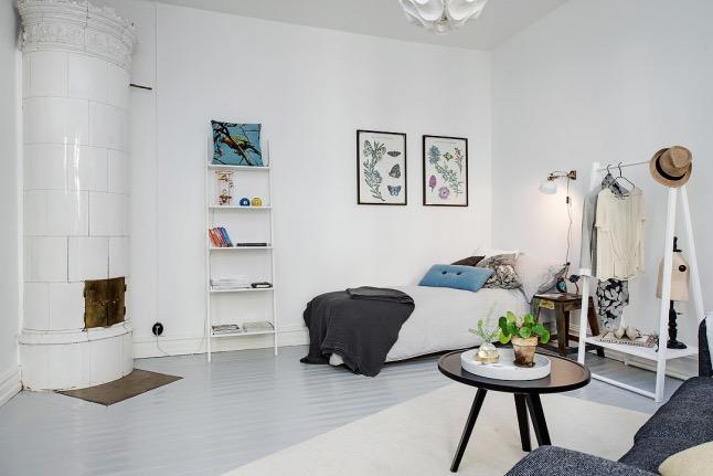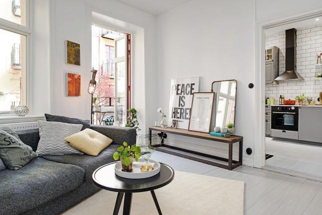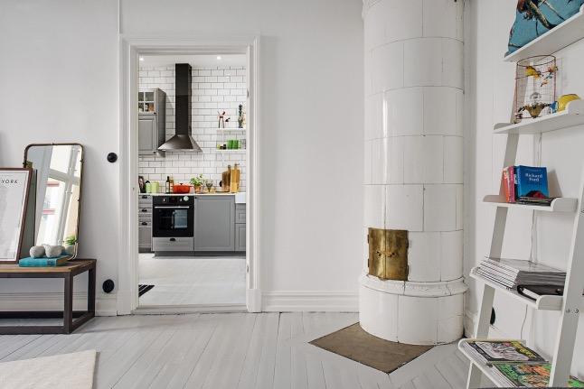 Esta semana en el blog, el protagonista es un precioso y minúsculo apartamento de poco más de 30 m2. ¿A que no lo parece? El blanco de suelo a techo hace que la sensación espacial sea mucho mayor de lo que es en realidad. Y la decoración a pesar de ser en tonos oscuros, no sobrecarga y tiene un punto industrial que me encanta. La chimenea y la cocina con azulejos tipo metro, me tienen enamorada. ¡Qué pena que en mi ciudad no haga suficiente frío como para tener una chimenea en casa, porque esta es ideal!