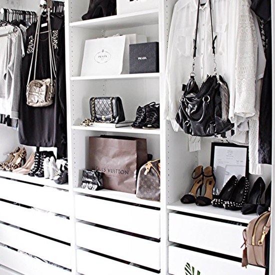 Una sala con el comedor incorporado, y un vestidor ordenadísimo totalmente abierto, otras veces comparte fotos de sus últimas adquisiciones: Moda, objetos de diseño, accesorios.... y ahí es cuando una empieza a babear de lo chulísimas que son!