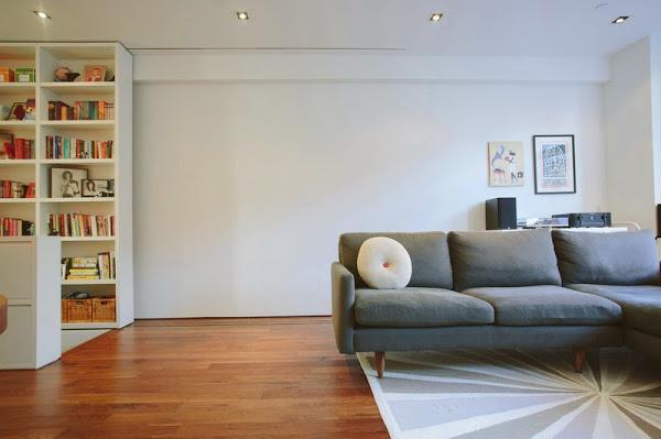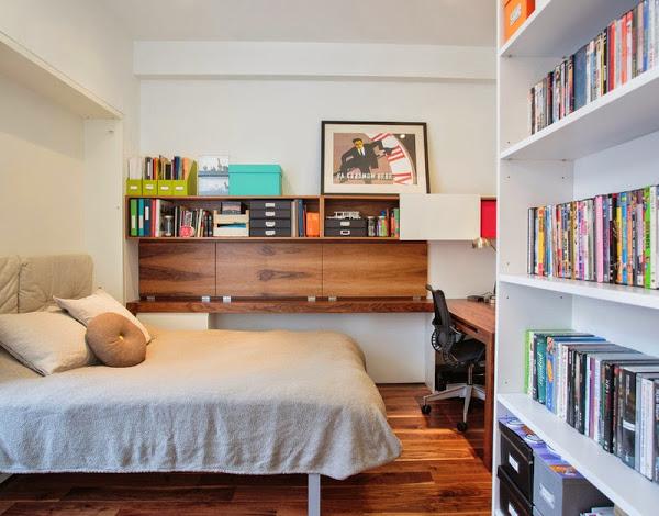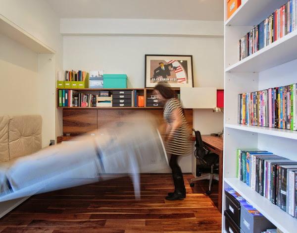 Dado que el espacio era estrecho, Raad desarrolló tres paneles de mesa en las bisagras que se pliegan fuera del camino cuando está fuera de la cama. Cuando los paneles queden planos, dan al dueño de casa más superficie de escritura.