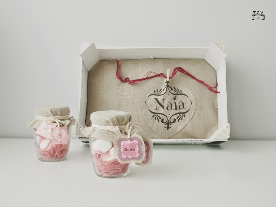 Yo por mi parte me he pasado varios días mirando ilusionada el buzón y esperando mi blog invisible, así que cuando llegó casi me temblaban las manos de emoción y mi blog invisible no defraudó, Olga de Inventando Baldosas Amarillas, se ha lucido pero bien, sobre todo con Naia que está encantada con los dos botecitos tan monos y llenos de chuches que a mí me ha dado una tremenda pena abrir, y es que estaban tan chulos que daba pena estropearlos!!! Toda la caja olía a dulce, hasta la pizarra molona donde ahora puedo escribir mensajes optimistas para alegrarme el día y la bandeja handmade donde ahora puedo colocar mis magdalenas para el desayuno.