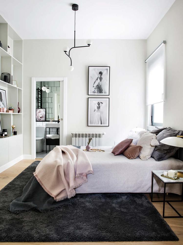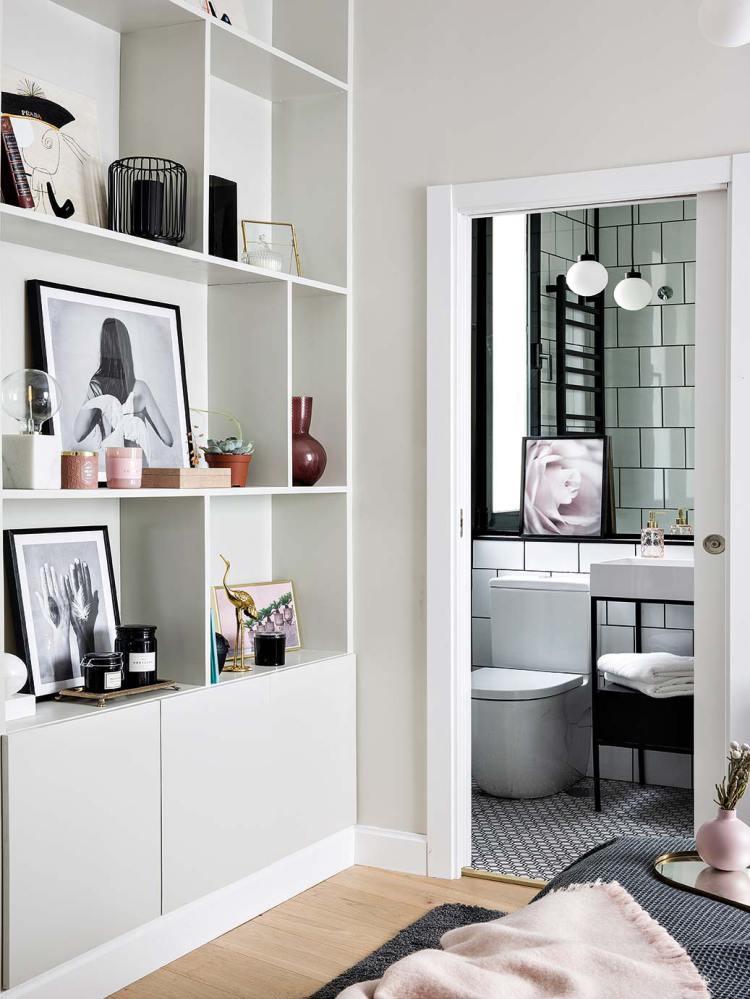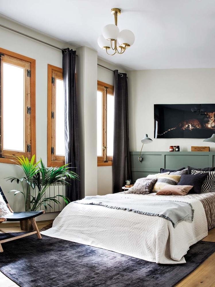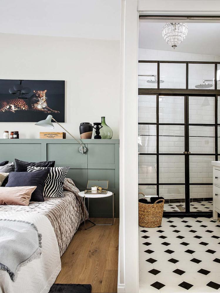 En el dormitorio se apuesta por el exotismo con glamour. Instalar puertas correderas en los baños hacen que queden integradas en el dormitorio, de ahí la importancia de que ambos espacios compartan la misma paleta de color. El retranqueo de uno de los dormitorios se aprovechó con una librería a medida, diseñada por el interiorista, con armarios en la zona inferior. Gracias a su acabado blanco roto, idéntico al de la pintura de la pared, se integra por completo en la decoración. El patrón asimétrico que siguen los estantes, cada uno con un ancho diferente, añade dinamismo al espacio. ¿Qué os parece este interior tan personal y ecléctico?