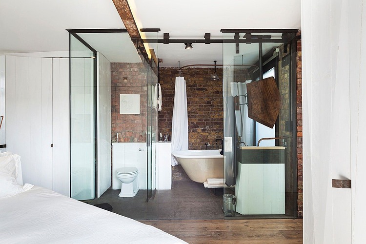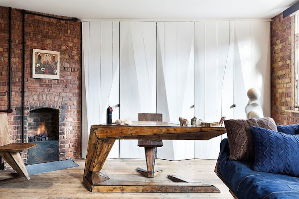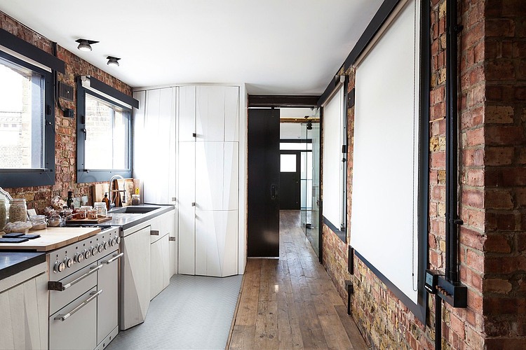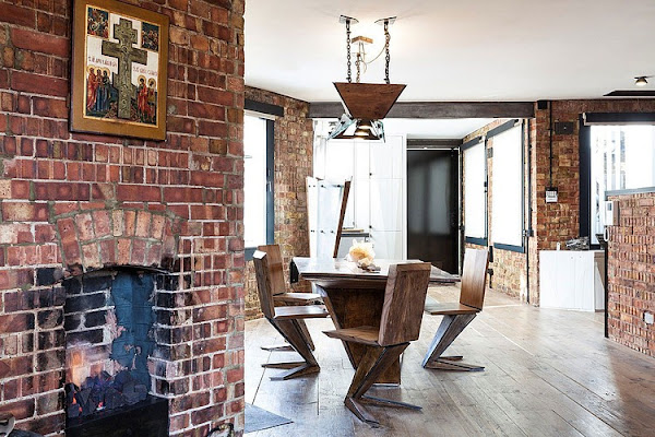 Este apartamento ideal de un sólo dormitorio a modo de loft de caracter industrial, se sitúa en el Soho londinense. Con un toque rústico moderno que se acentúa en los muebles de diseño de madera, el resultado nos descubre un espacio a modo de nave industrial, remodelada y con el ladrillo cara vista y la madera como materiales principales. El apartamento fue renovado y el objetivo era crear una casa completamente sostenible respetando el medio ambiente y su carácter antiguo, utilizando materiales naturales y productos de origen local. La reforma introdujo un número de elementos y características modernas que son compensados por elementos industriales y rústicos, como las paredes de ladrillo, chimenea y los suelos de madera. La decoración interior es sosegada, con muebles personalizados, texturas, materiales y colores muy bien elegidos para reflejar la visión del dueño de un ambiente cálido y confortable. El apartamento cuenta con una amplia sala de estar y comedor llena de luz que penetra a través de los grandes ventanales.