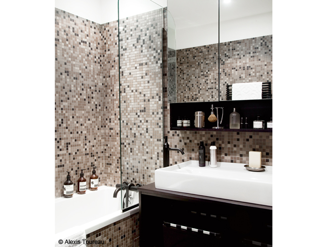 En el comedor, la chimenea ocupa casi toda una pared. La chimenea se ajusta a un banco de cemento negro que sirve de asiento a su vez. En el comedor, el equipo de música se sitúa integrado en unos antiguos archivos metálicos tipo lockers y los dos radiadores son unas cuchillas industriales recuperadas. En el exterior, los bambúes se distribuyen creando una atmósfera escandinava que aspira a un mundo "zen". Se opta por una paleta de colores neutros: blanco, beige, madera rubio, gris y toques en negro. En la sala de estar, arriba, una pared frontal coronada por una pared de vidrio se construyó a lo ancho para permitir el máximo de luz. La biblioteca blanqueada, el sofá y las alfombras contribuyen al espíritu natural que predomina en la decoración.