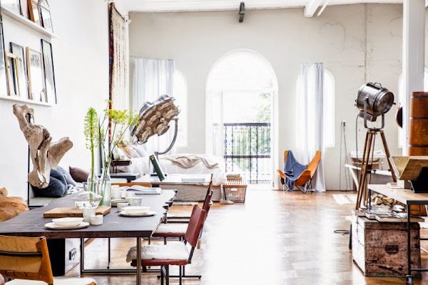 En un único espacio y mucha luz, las paredes y divisiones se suprimen y desaparecen, y de un sólo vistazo encontramos todo aquello imprescindible en una vivienda. Un concepto muy neoyorquino que arrasa en todas las ciudades más cosmopolitas del mundo. En The Loft todo se vendía y estuvo abierto en la ciudad holandesa en julio y agosto. Los visitantes pudieron contemplar una colección cuidadosamente elegida de diseño, arte, mobiliario y complementos culmina en una experiencia inspiradora del diseño de interiores más exclusivo y singular. Arte por los cuatro costados donde podemos observar piezas únicas como el magnífico avión antiguo colgado sobre la zona de estar. Arte contemporáneo, retratos, una lámpara de dentista, focos antiguos, esculturas orgánicas realizadas con piezas de madera, exquisitos tejidos procedentes de todos los rincones del mundo y la fabulosa bañera revestida de aluminio en mitad del espacio. ¡Maravilloso!