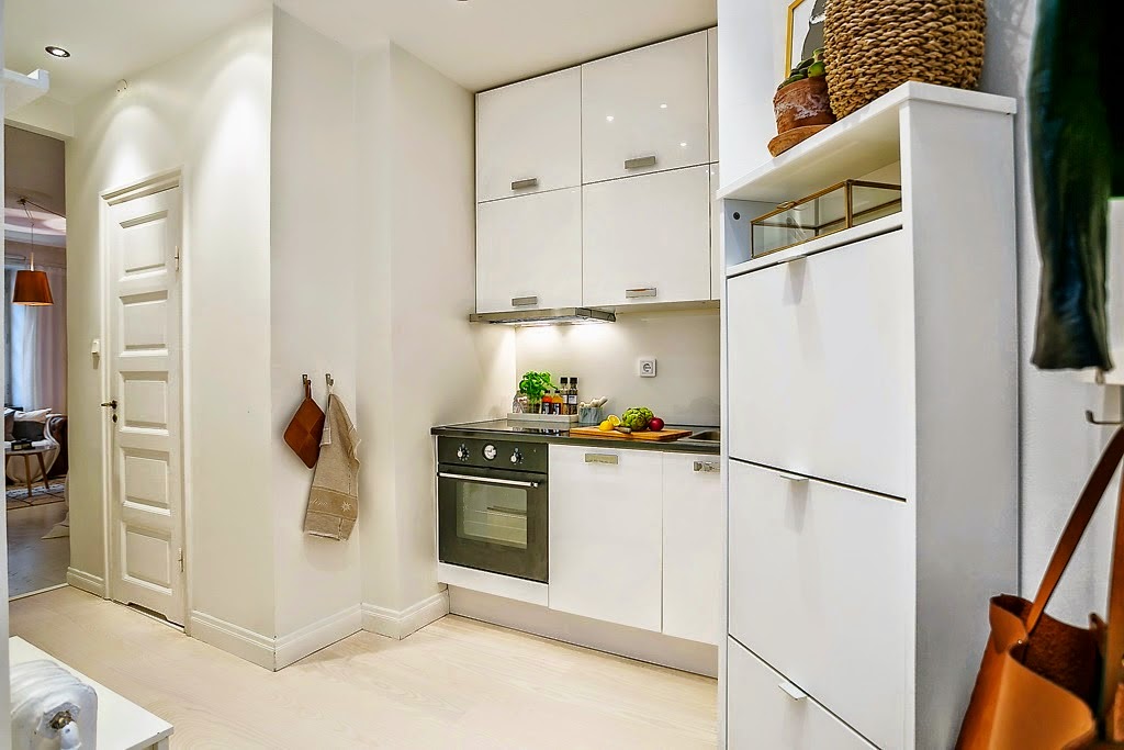 Un interior muy pequeño pero que gracias a la paleta y la iluminación con el mobiliario y demás, se crea una sensación de amplitud mayor. Todo un lujo de estudio diseñado al milímetro donde todo encaja y funciona.