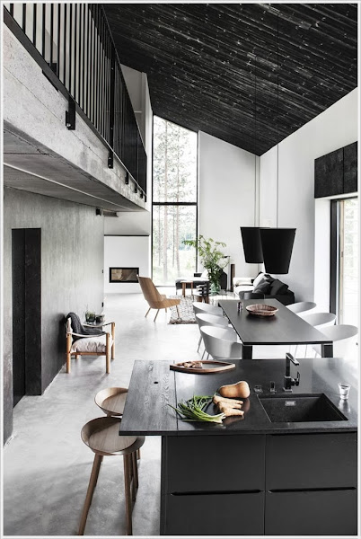 Creo que se puede decir que estos de las imágenes son maravillosos. Pero eso sí, imprescindible que tengan las proporciones correctas entre el alto y el ancho para evitar que se conviertan en espacios estrechos inmensamente altos. A la hora de decorarlos es importante elegir un estilo, colores, materiales,..... Los muebles y accesorios han de ser del tamaño adecuado para que los espacios no se vean ni vacíos ni demasiados llenos. Pues nada que así vistos parece fácil, pero seguro que tras estas imágenes hay un gran trabajo de decoradores y diseñadores. Como podéis ver os dejo un ejemplo de cómo el negro no es siempre sinónimo de oscuro, eso si acompañado de unos grandes ventanales. Ni el blanco es siempre sinónimo de frialdad, ni......va a ser mejor que lo descubráis por vosotr@s mismos. En resumen hoy vengo con muchas ideas y una dosis de inspiración XXL para un jueves cualquiera.