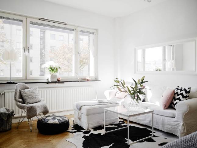 Hoy quiero compartir con vosotros un apartamento que me ha encantado por su sencillez y por lo bien que han aprovechado cada espacio. Tiene tan sólo 53 m2, aunque viendo las imágenes quien lo diría!! Su interior se ha amueblado con piezas escogidas, mobiliario de diseño y vintage, todos ellos con el blanco y el negro como absolutos protagonistas, junto con la ,madera (el suelo en espiga me parece ...