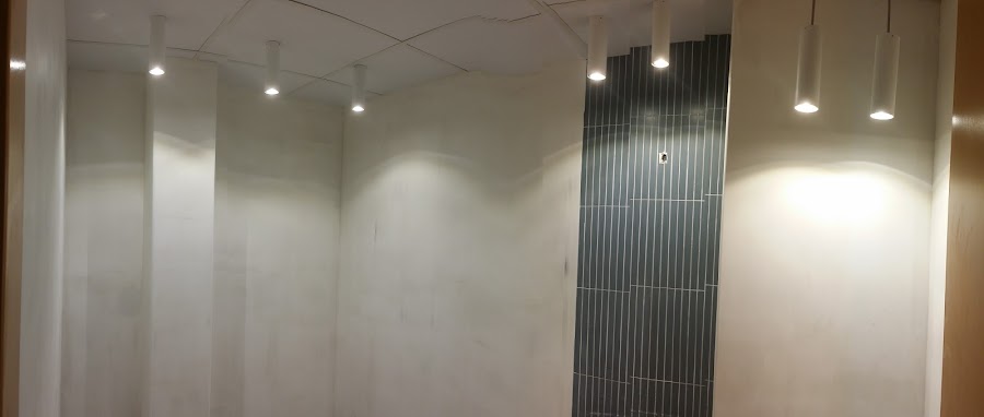 - Enlucido de los azulejos con masilla cerámica para colocar papel pintado especial para baños.