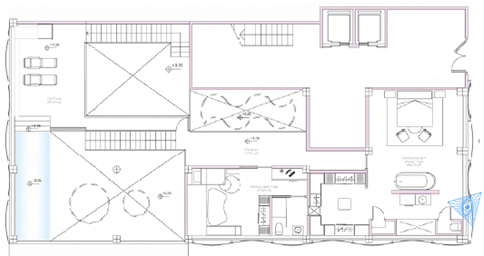 El baño del dormitorio principal será abierto y tendrá un lavabo y un tocador.