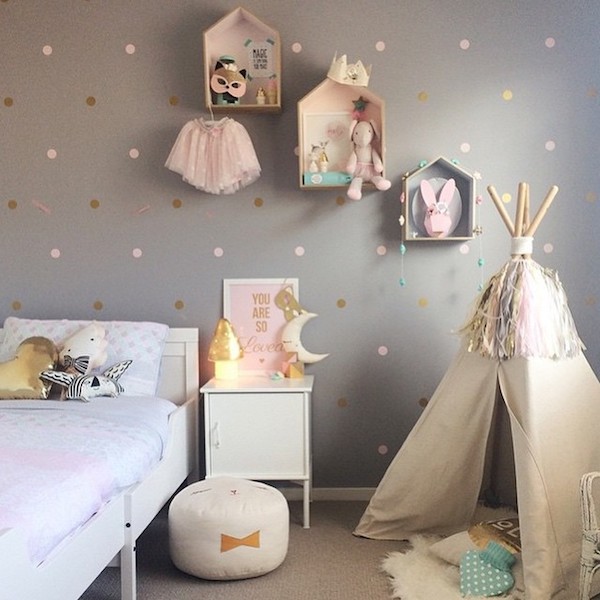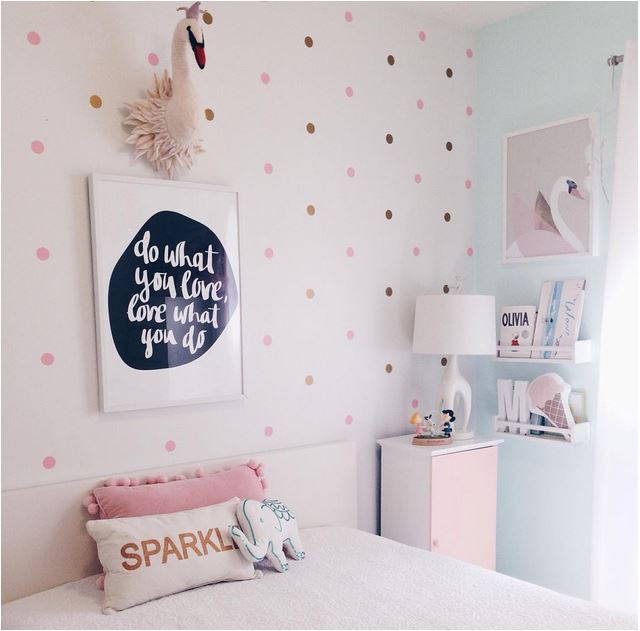 Y aunque soy muy fan de las paredes blancas, para la habitación de la peque me apetecía algo de color, el problema era que con ella en casa , es muy difícil ponerse el mono y empezar a pintar o empapelar paredes....¿Solución? VINILOS DE LUNARES, sí, unas sencillas pegatinas que llenarán de color fácil y rápidamente.