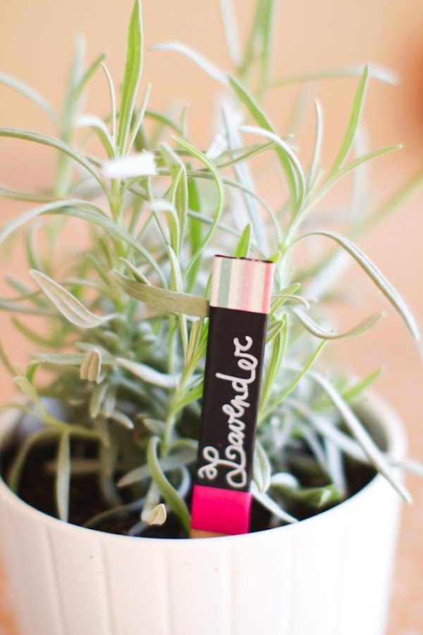 Para rematar este precioso tuneo, Audrey hizo unas etiquetas para marcar las plantas del mismo estilo que la decoración de su carrito utilizando palos de madera, aironfix, y washi tape ¡Me encanta!