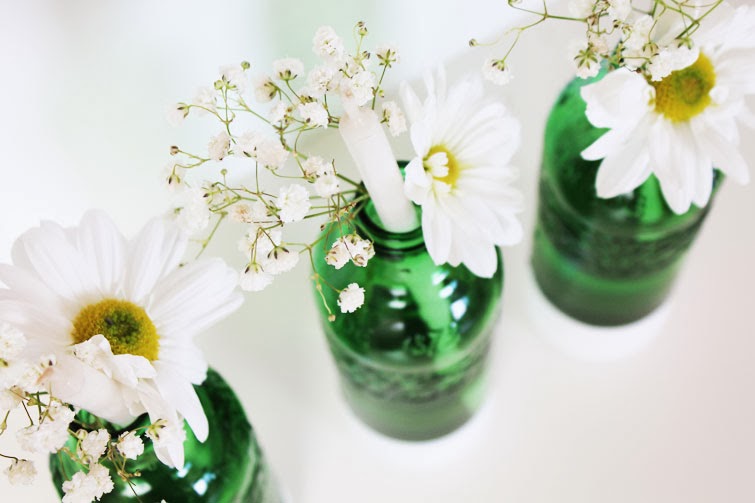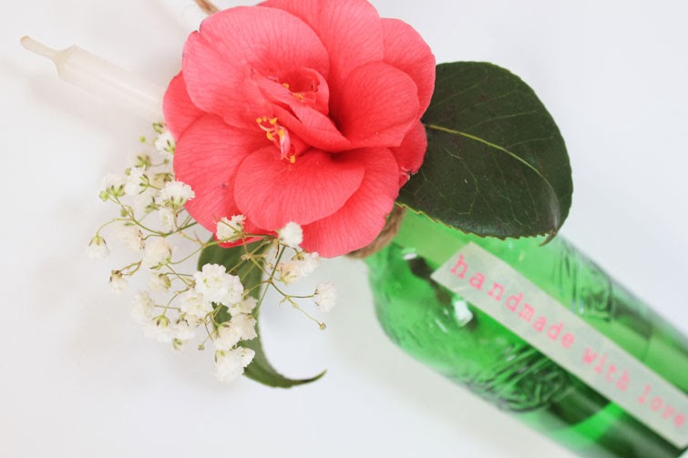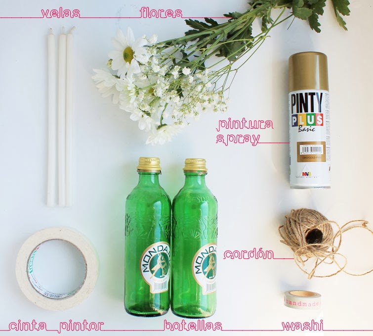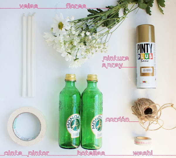 Si nos ponemos en plan sinceras, tenemos que decir que no siempre los DIY que mostramos nos salen como nos gustarían o están a la altura (os acordáis del carvado desastre?? Grrrrr), sin embargo, con un poco de iluminación os los enseñamos, porque para eso nos lo hemos currado, no?? Hoy es una de las pocas ocasiones en que la realidad (oséase, las fotos!) supera a la ficción y el resultado es mucho, pero mucho más lindos de lo que sale en las imágenes. Quedan, de verdad de la buena, muy bonitos los pequeños jarrones con el toque en blanco de la pintura, el washi (de Mimosa&Estraza!) y unas cuantas flores sencillas (en este caso camelias y margaritas). Si además añadimos una vela, se convierten en unos candelabros muy personales en cualquier mesa.