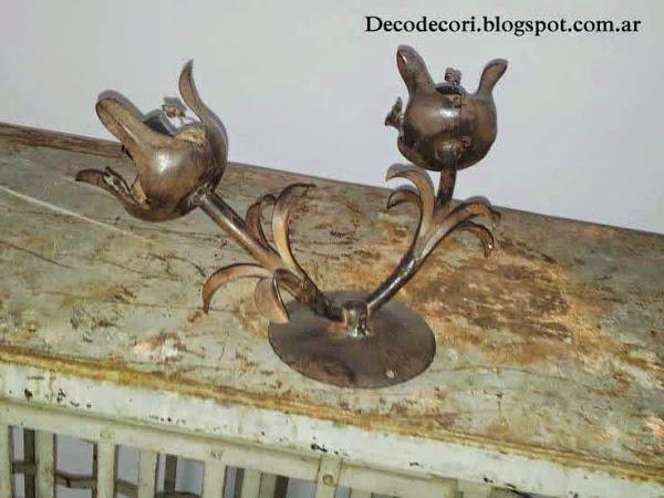 En casa había un aplique artesanal con unas tulipas en flor y de estilo óxido también en chapa y si me hacían pintarla ¿ Porque no formar un equipo entre ambas ?
