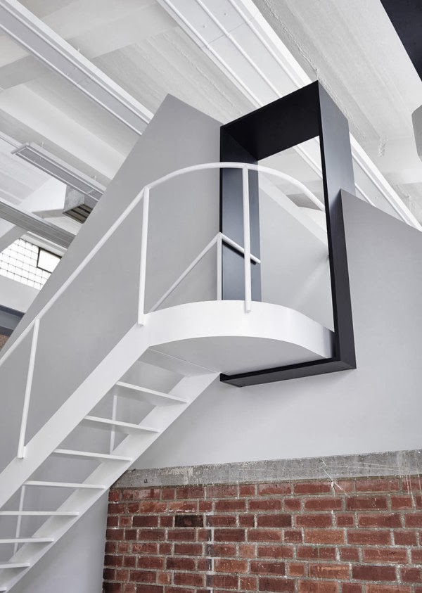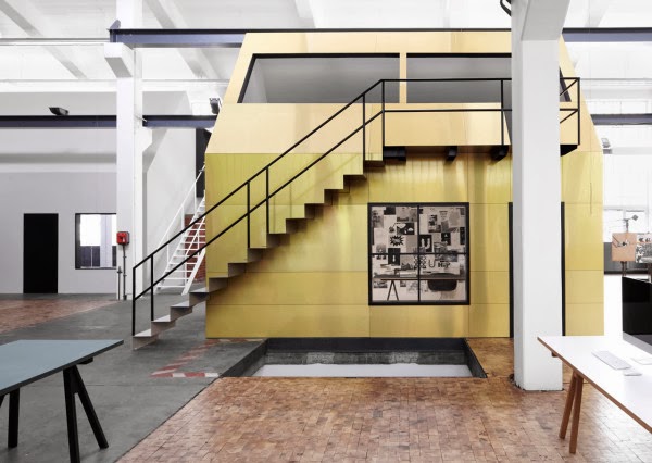 This office space was designed by the german studio Designliga where used to be a metal company. Inside they decided to keep the industrial aesthetic using the same materials and textures as outside and bringing some surprising new ones.