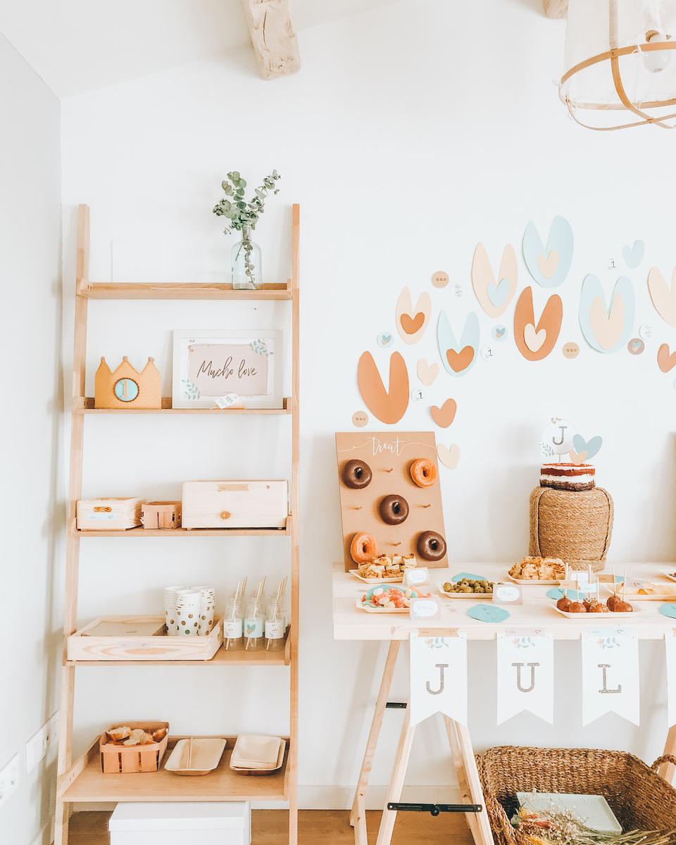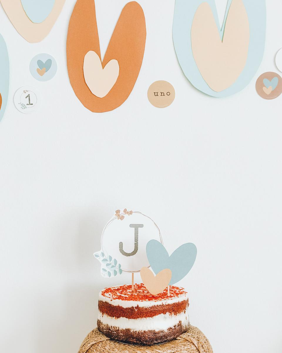 Los corazones del fondo de mesa los dibujó Alma y los recortamos juntas. Fue muy bonita verla tan implicada y emocionada con la fiesta de su hermano.