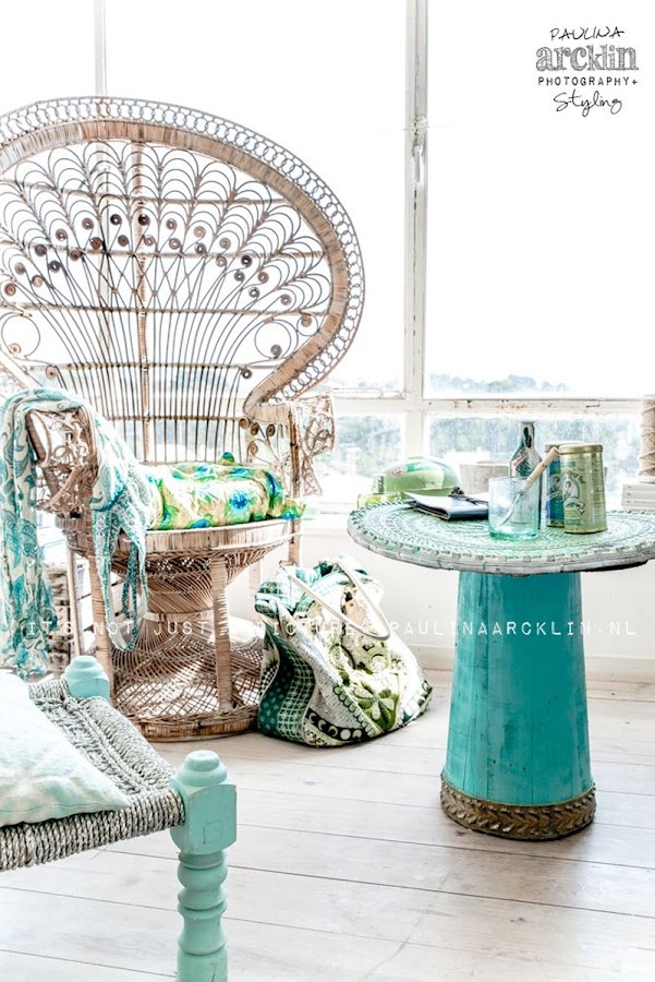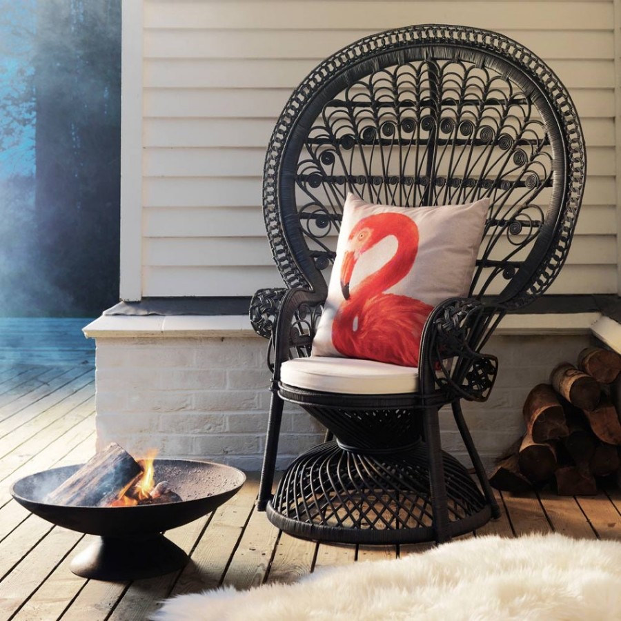 Es imposible no quedarse fascinado con esta silla, su belleza y exotismo, así como la tremenda naturalidad que desprende es bien atractiva. Su característico respaldo con la forma de la cola desplegada de un pavo real marca la estructura, formada íntegramente por un trenzado de varas de ratán. Una butaca que hace que el ambiente resulte tan cálido como original y llamativo.