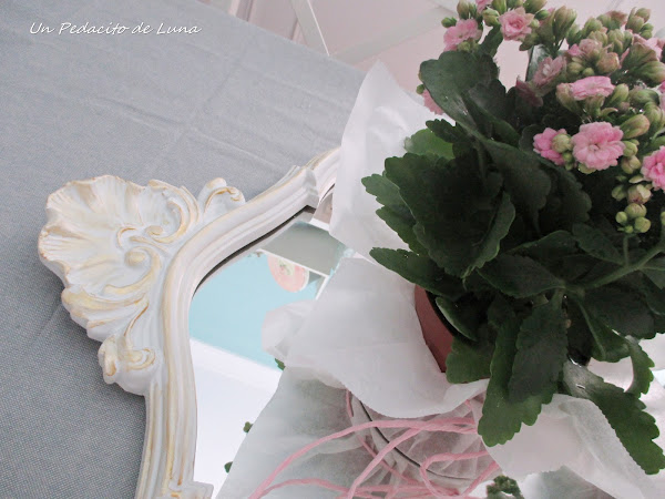 Y también espero que os guste esta composición con el espejo, a mi me parece muy original, incluso con diferentes botecitos en cristal y combinando los tonos de las flores, puede quedar muuuy lindo, en el comedor, en las mesitas de salón......