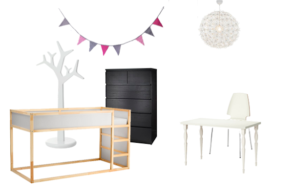 litera Kura 150?+cómoda Malm 119?+mesa Linnon/Nipen 74,99?+silla Vilmar 29,99?+lámpara Mashros 79?