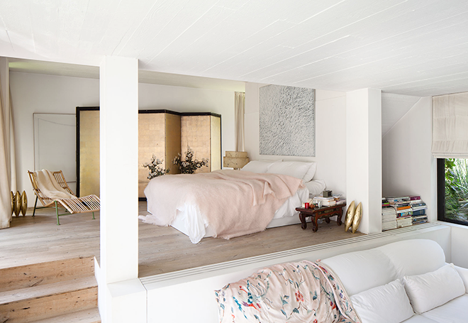 Muchas veces hemos oido que hacen falta pocas palabras para expresar una idea, cuando lo que queremos expresar es muy evidente. Exactamente eso me ha pasado con este dormitorio, pocas imágenes necesito para quedarme enamorada de él. Desde que lo vi, me dejó prendada, no sé si por su manta rosa pálida ♡ ♡ ;-) o por la sencillez y simplicidad del espacio pero lo cierto es que se trata de un dormitorio admirable.