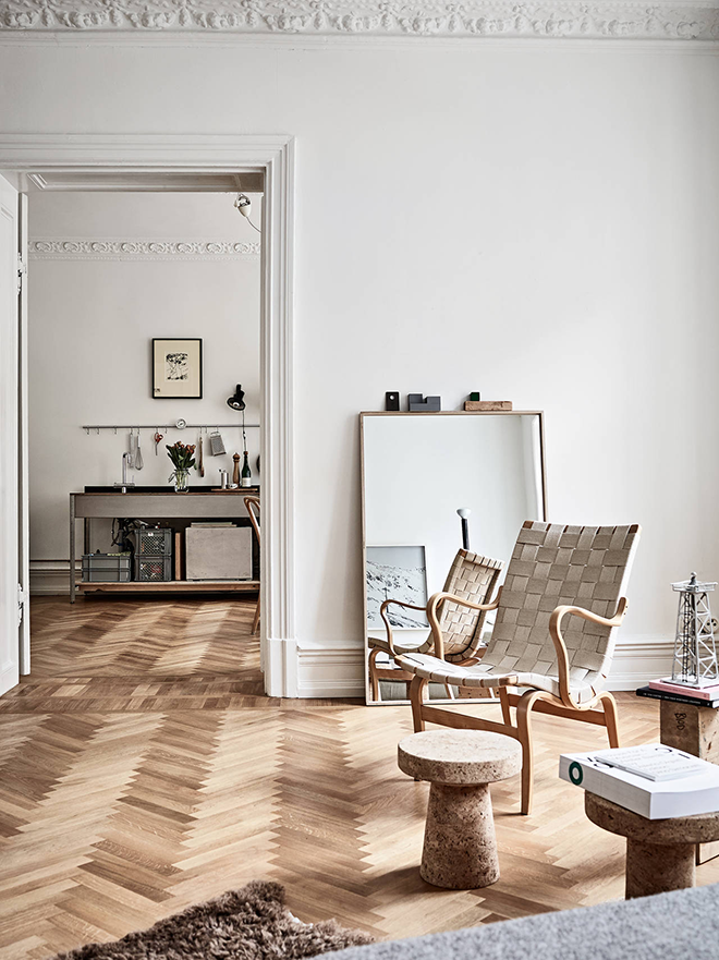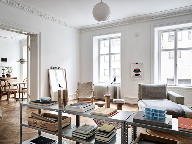 Hay interiores que te enamoran de una manera increíble y éste es el claro ejemplo de ello. Lo tiene todo para convertirse en un hogar perfecto y confortable, un hogar con personalidad y sobre todo vivido. Desde la impresionante belleza de la disposición del pavimento, adoro la madera en espiga, aunque sea una colocación carísima, las molduras, las carpinterías altísimas y blancas y la luminosidad, firmo ya para vivir en ella. Un estilo clásico renovado que me cautiva. J